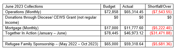 Our 2023 Together In Action goal is $78,445 and any surplus funds above our goal will go towards the repair of the main doors to the church. To date we have raised $46,973.12 towards our goal thanks to your generous contributions.