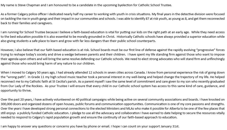 The Calgary Catholic School District is holding a by-election on Jan. 31 to elect two school board trustees to represent Wards 4 & 7 and Wards 11 & 12. Advance Vote days are Jan. 24 and 25. See who can vote, where to vote, ID requirements, list of candidates and more at electionscalgary.ca/byelection